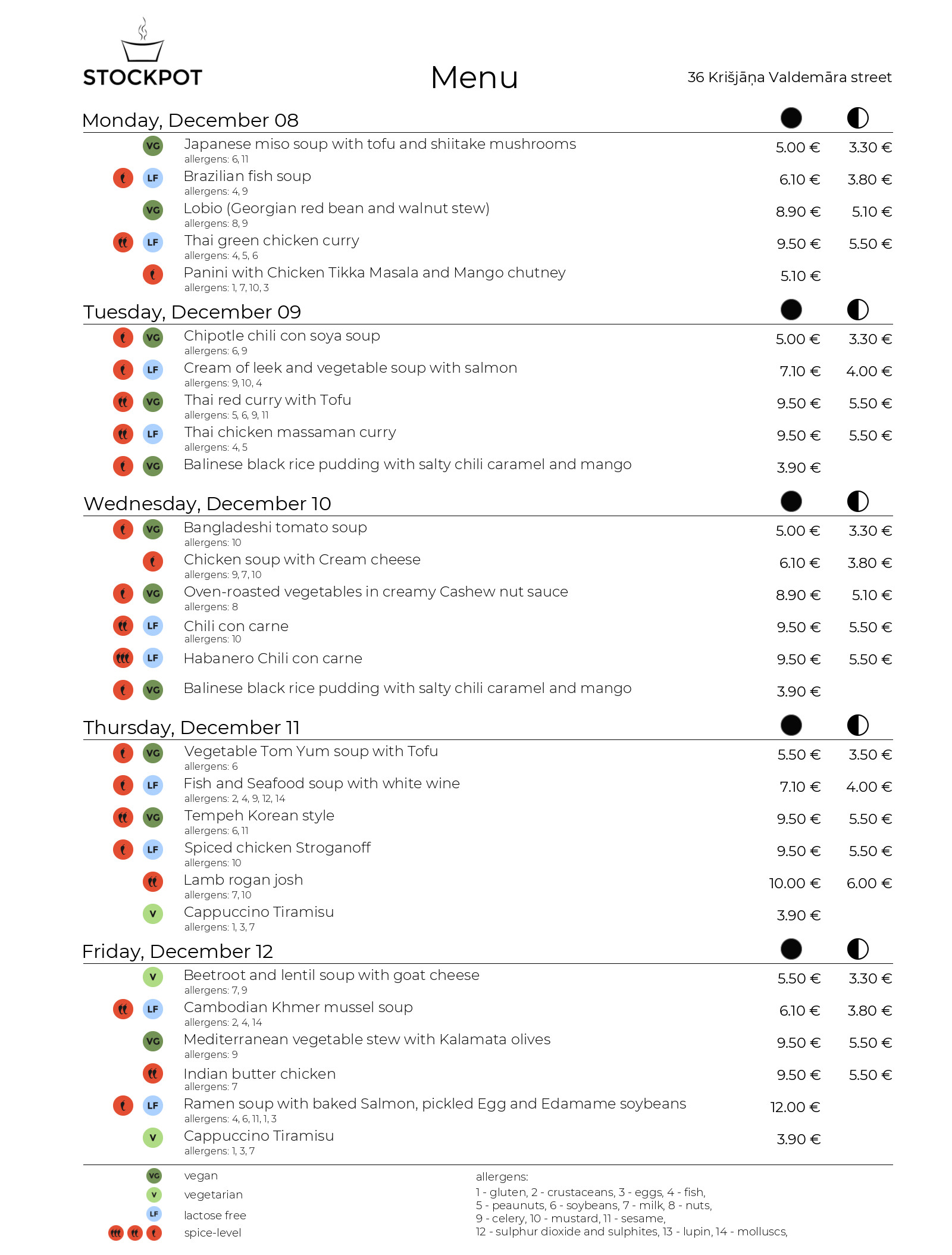 1 - gluten, 2 - crustaceans, 3 - eggs, 4 - fish, 5 - peaunuts, 6 - soybeans, 7 - milk, 8 - nuts, 9 - celery, 10 - mustard, 11 - sesame, 12 - sulphur dioxide and sulphites, 13 - lupin, 14 - molluscs