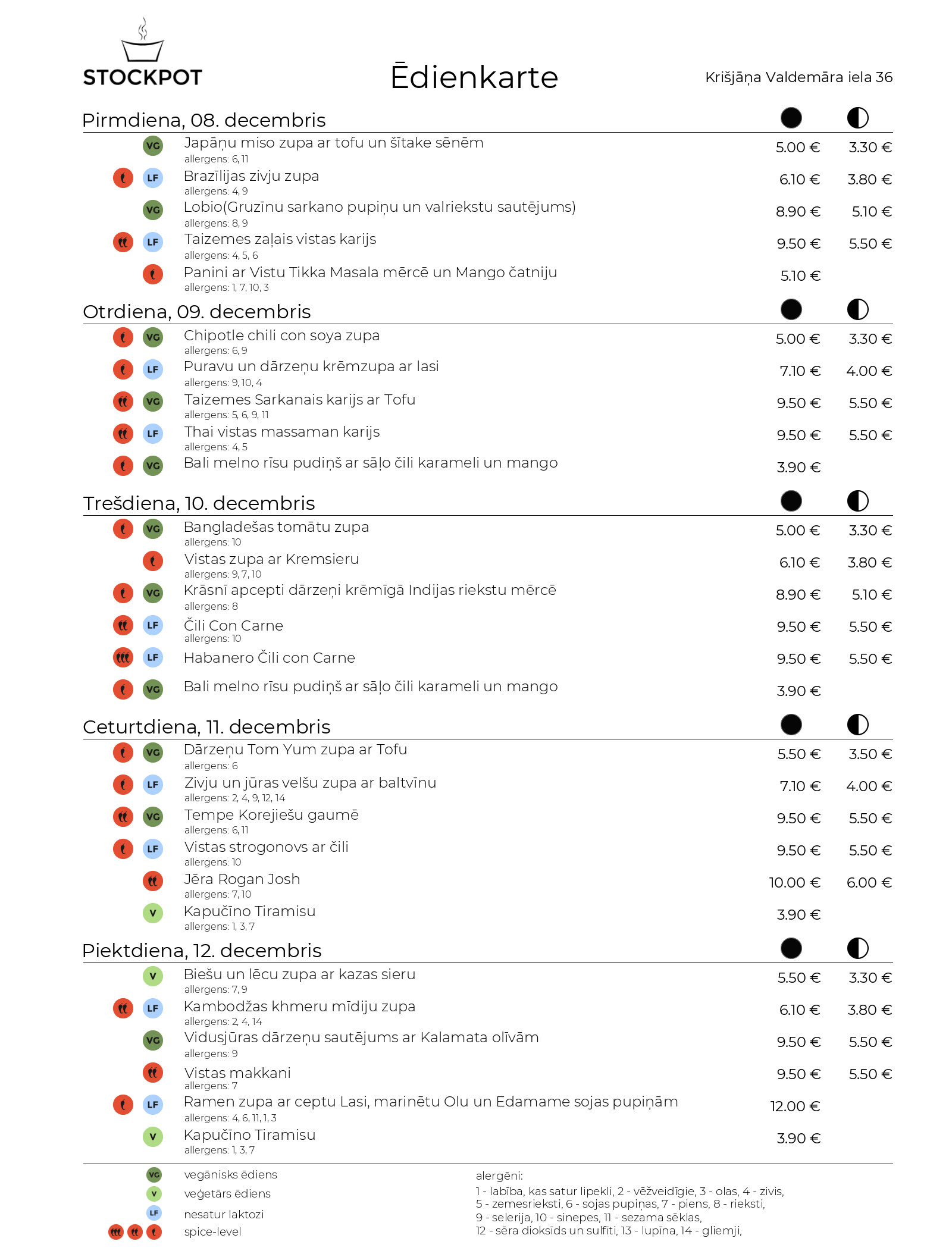 Kopš atvēršanas 2012. gada janvārī mūsu mērķis ir veidot pusdienu piedāvājumu, kurš ar savu kvalitāti un daudzveidību atšķirtos no apkārtējā, bet līdztekus nebūtu pārāk dārgs vai ilgi jāgaida. Tuvo Austrumu un Indoķīnas virtuve, mazāk pazīstami gardumi no Kaukāza kalniem un Vidusjūras valstīm, gadsimtiem vecas receptes un laikmetīga pieeja gatavošanai - tas viss satiekas mūsu daudzveidīgajā ēdienkartē.