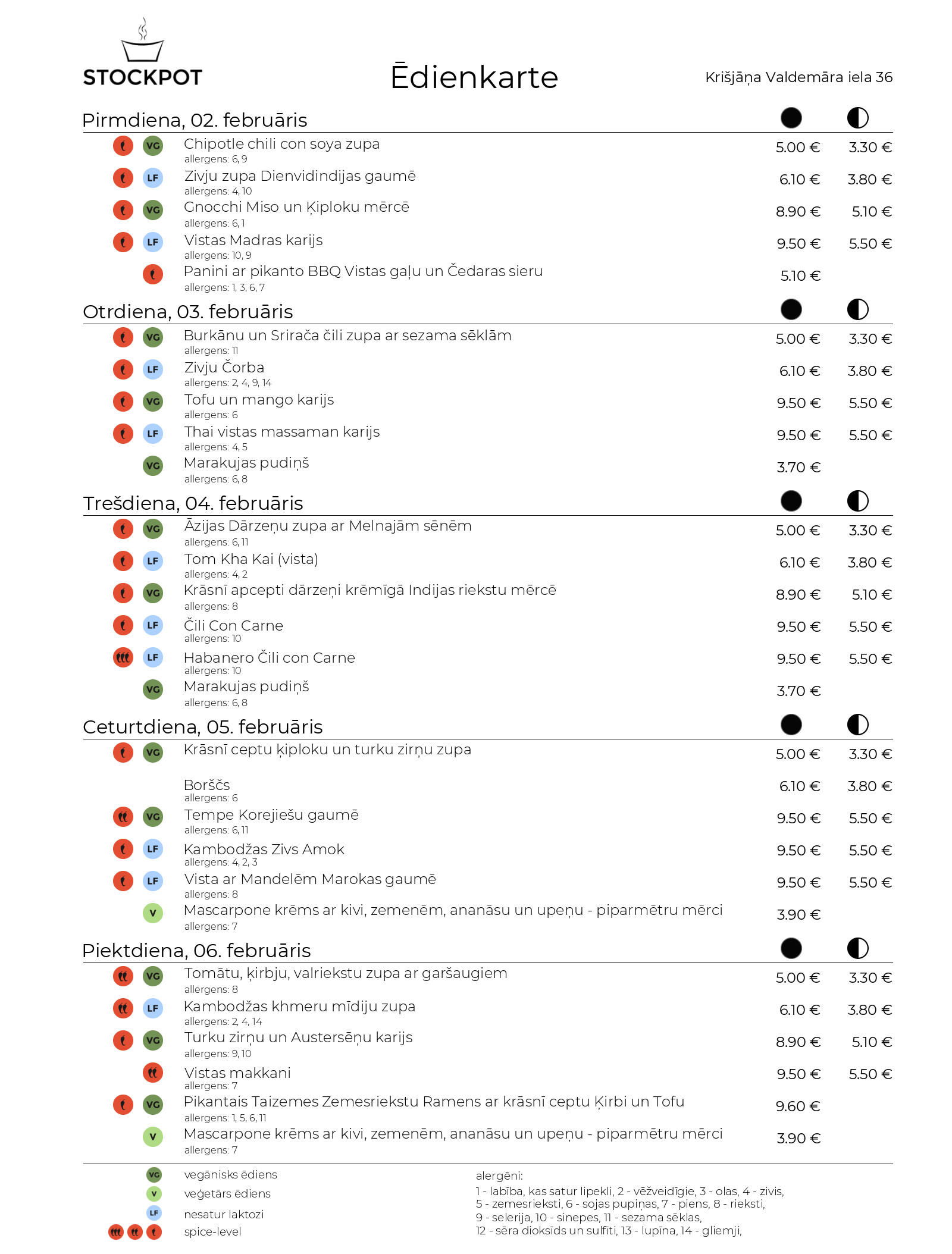 1 - labība, kas satur lipekli, 2 - vēžveidīgie, 3 - olas, 4 - zivis, 5 - zemesrieksti, 6 - sojas pupiņas, 7 - piens, 8 - rieksti, 9 - selerija, 10 - sinepes, 11 - sezama sēklas, 12 - sēra dioksīds un sulfīti, 13 - lupīna, 14 - gliemji